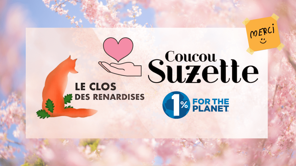 Le Clos est récipiendaire de 1% pour la Planète dont la mission est d’augmenter la philanthropie environnementale, opportunité peu exploitée par l’asso mais qui s’est agréablement rappelée à Carine très récemment. Une entreprise membre « Coucou Suzette » a choisi de soutenir les renards en faisant un très généreux don au Clos des Renardises, c’est une autre chance pour l’agrandissement ! Juliette et son équipe réalisent et proposent des créations colorées, rigolotes, uniques et délicieusement kitsch, un style glamour que le Clos vous invite à découvrir – Un immense Merci à Juliette et toute l’équipe !