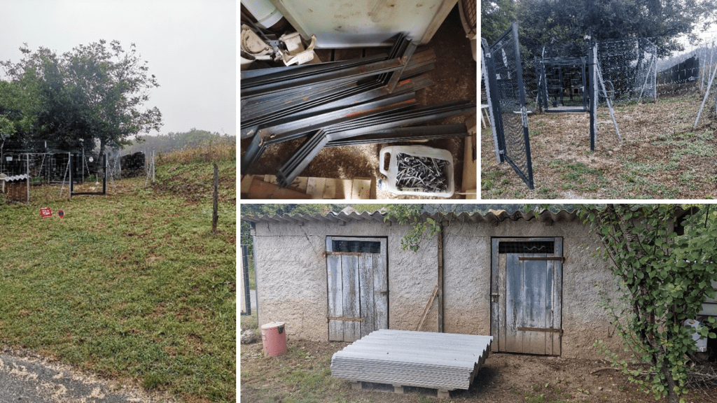Il y aura des aménagements complémentaires qui ne sont pas compris dans le devis : achats et pose des retours – une partie des bavolets a été fabriquée et offerte par Philippe, un de nos bénévoles que nous remercions grandement – il en faudra d’autres + le grillage qui formera le retour, le prolongement des 2 rangées de fils électriques, une porte d’accès de l’enclos 1 vers la partie 2, quelques passages de type trappes (qui pourront être refermées si besoin) il faudra des abris supplémentaires, des enrichissements, etc. la réhabilitation du petit bâti en local de stockage et d’accueil, l’aménagement tout autour avec gravier, parking … Votre soutien sera le bienvenu, nous allons bientôt lancer un financement participatif.