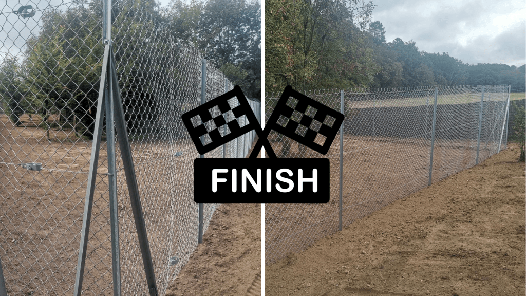 Le 6 septembre, l’entreprise Jaroussie a rangé ses outils et rembarqué ses machines, le chantier enclos est terminé, 88 mètres de grillage enterré à 50cm et de 2 m hors sol, 4 rangs de fils tenseurs, 37 poteaux bétonné, des jambes de forces en renforts et un terrain et des abords nivelés. Au tour des finitions !