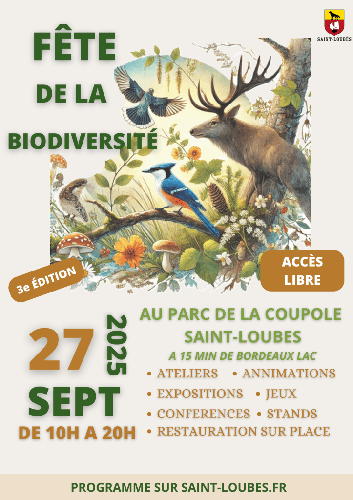 - Samedi 27 septembre : Stand et animations à la Fête de la biodiversité à Saint-Loubès (33), entrée libre.