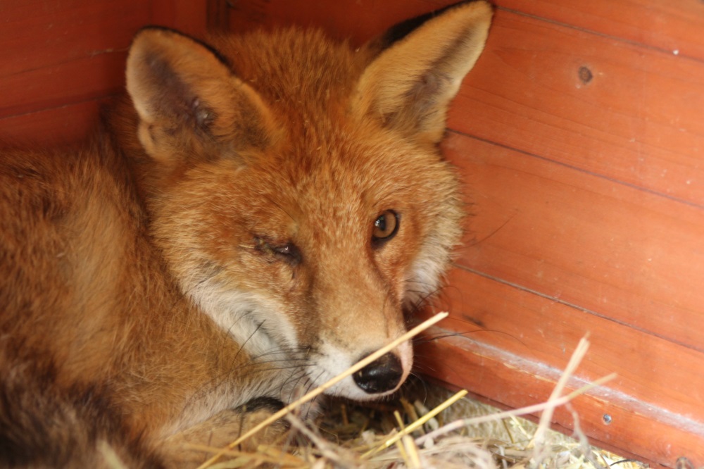 Remis d’une fracture d’un membre antérieur et d’une paralysie transitoire des postérieurs. Lupin a cicatrisé d’une plaie sur la cage thoracique plus étendue que profonde et a été épargné de justesse des asticots (retirés un à un) qui s’étaient dispersés en nombre dans ses poils. Lupin a gardé du choc véhicule une cécité complète. Le Centre de soins qui aurait dû le récupérer l’aurait euthanasié puisque inapte à la vie sauvage. Avec l’appui de notre vétérinaire sanitaire référent, toutes les formalités ont été remplies et Lupin a intégré l’enclos renardeaux le 1er août 2023. Il ne récupère pas la vue mais développe les autres sens. Il trouve ses marques, ses repères sensoriels et grandit en beauté.